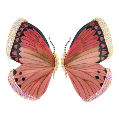 Horse Mane Earrings with Diamonds, Pink and Purple Sapphires