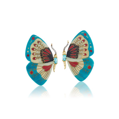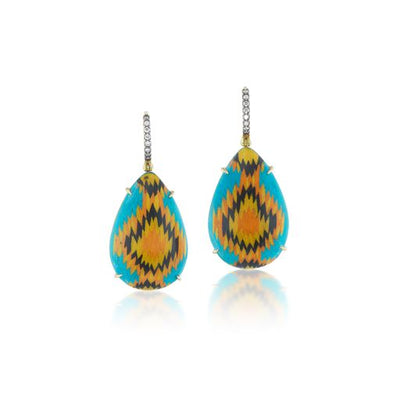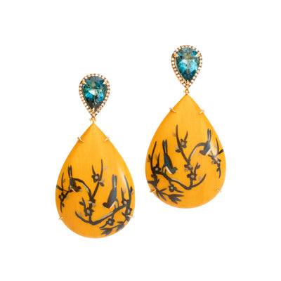 Sky Topaz Hydrangea Teardrop Marquetry Earrings