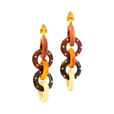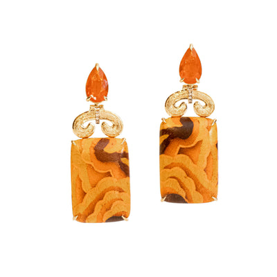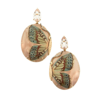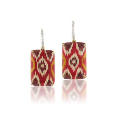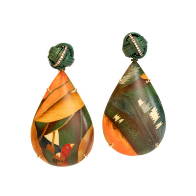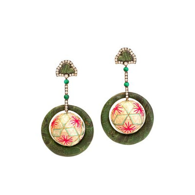 Peridot White Hydrangea Rectangular Marquetry Earrings