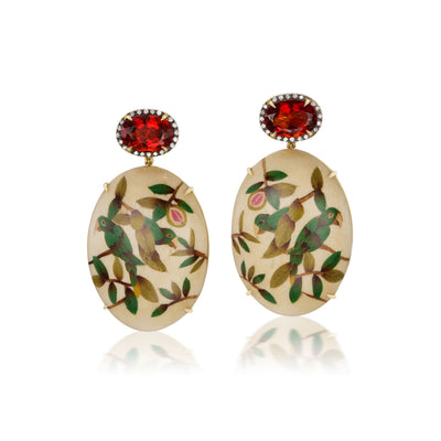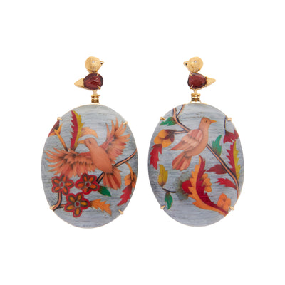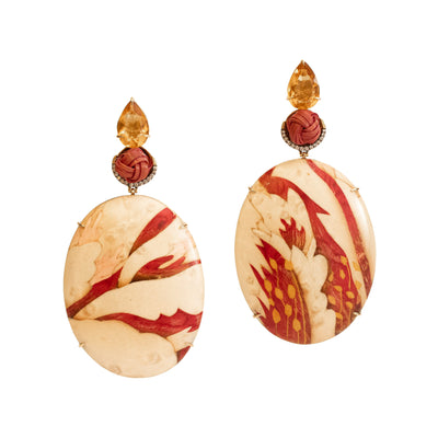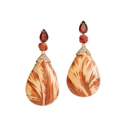 Pearl and Ruby Pink Rose Marquetry Earrings