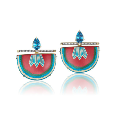 Pink Tourmaline Sky Blue Topaz White Gate Painting Earrings