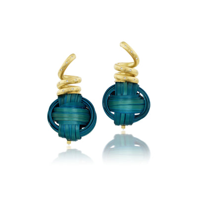 Blue Topaz Hydrangea Circle Marquetry Earrings