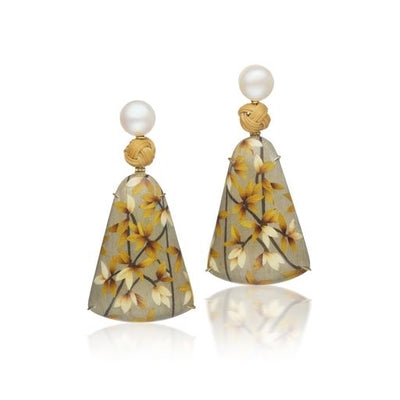 Gold Pearl Hydrangea Marquetry Drop Earrings