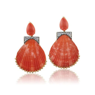 Gold Pearl Hydrangea Triangular Shape Marquetry Earrings
