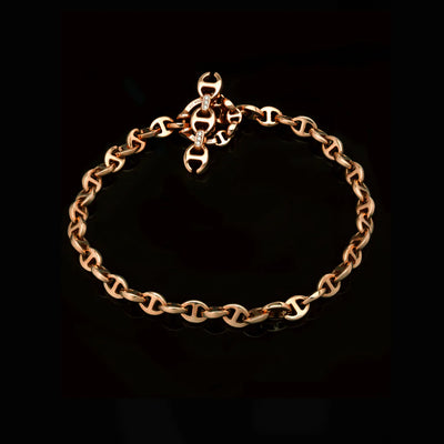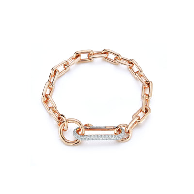 Saxon Rose Gold Chain Link Bracelet with Elongated Diamond Link Clasp