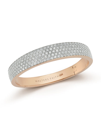 All Pave Diamond Bombe Hinged Bangle Bracelet