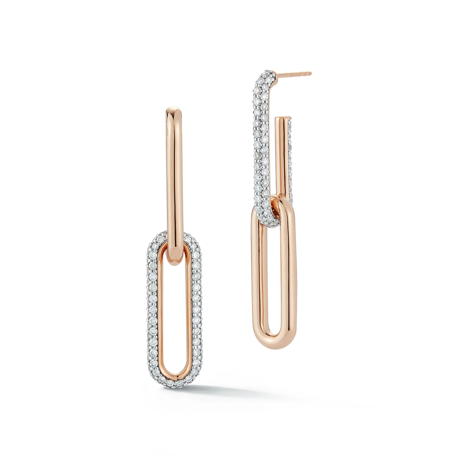 Saxon Rose Gold and Diamond Mix Matched 2 Drop Elongated Link Earrings