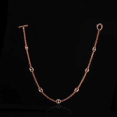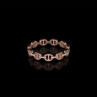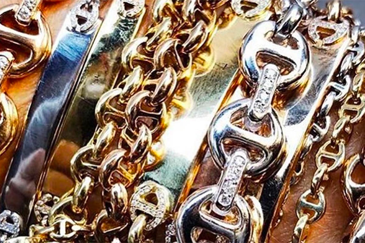 These are my favorite chains in the industry. Hoorsenbuhs is named for a 16th-Century Dutch merchant ship sailed by Keith’s ancestors and the chains are inspired by the ship’s anchor chain. Hoorsenbuhs is entirely unisex and focused on beautifully crafted 18K gold. It’s all cast in-house in California and it has incredible heft and weight to it. You can wear these pieces hard and well and they only get better over time. K.J.