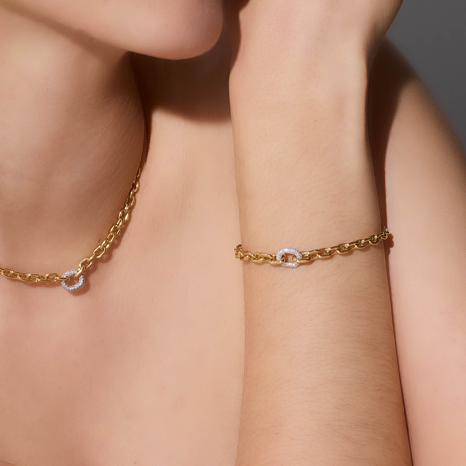 Morrell Rose Gold Graduated Link Necklace with One Diamond Link