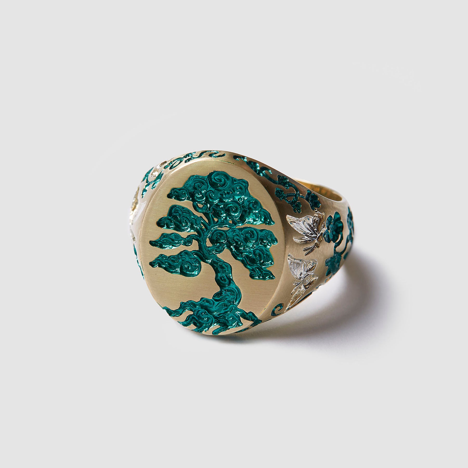 Tree of Life Signet with White Rhodium